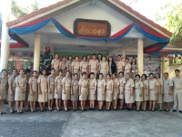นางหทัยรัตน์ เขียวเอี่ยม ผู้อำนวยการโรงเรียนวัดลาดปลาเค้าและคณะครู ร่วมแสดงความยินดีกับครูธรรมศักดิ์ ทองเดือน ในโอกาสย้ายกลับไปรับราชการที่ภูมิลำเนา (จ.ร้อยเอ็ด)