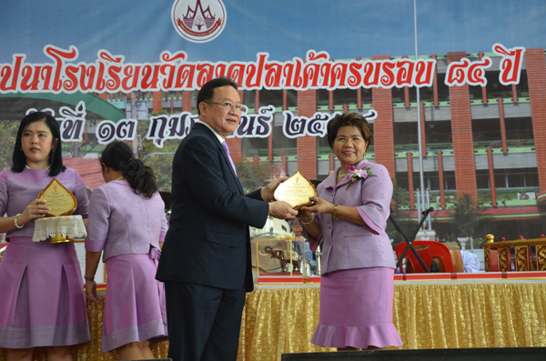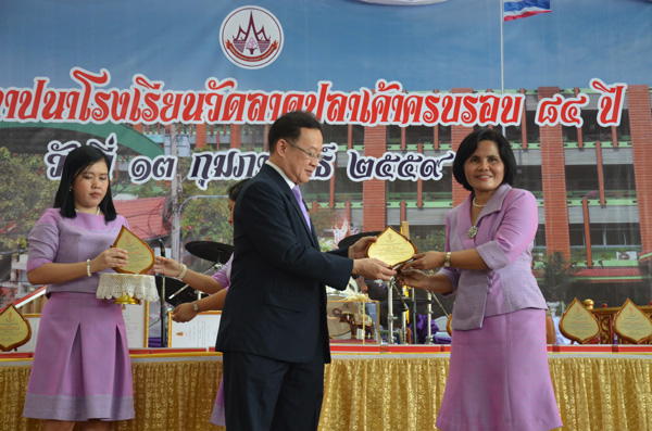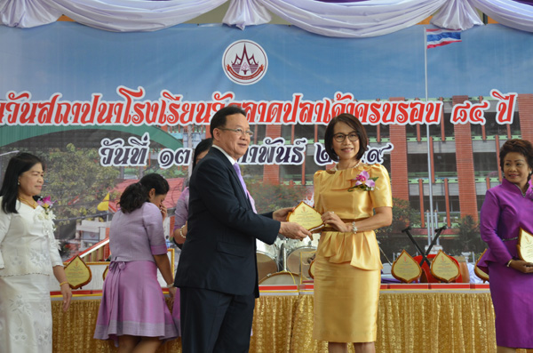 นางหทัยรัตน์ เขียวเอี่ยม ผู้อำนวยการโรงเรียนวัดลาดปลาเค้า ให้การต้อนรับ ม.ร.ว.จิราคม กิติยากร ประธานในพิธีเปิดงาน "รำลึกวันสถาปนาโรงเรียนครบรอบ 84 ปี" พร้อมทั้งชมการแสดงความสามารถของนักเรียนระดับชั้นอนุบาลถึงชั้นประถมศึกษาปีที่ 6 มีการประกวดขวัญใจลาดปลาเค้า ประจำปีการศึกษา 2558 ซึ่งเด็กหญิงชนารดี ตอรบรัมย์ ชั้นอนุบาล 2/1 ได้รับรางวัลขวัญใจลาดปลาเค้าประจำปีนี้ไปครอง |