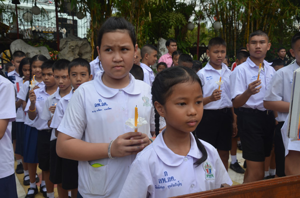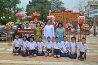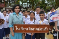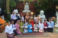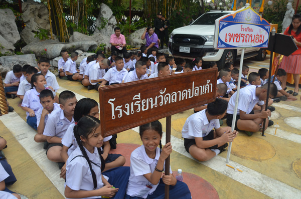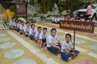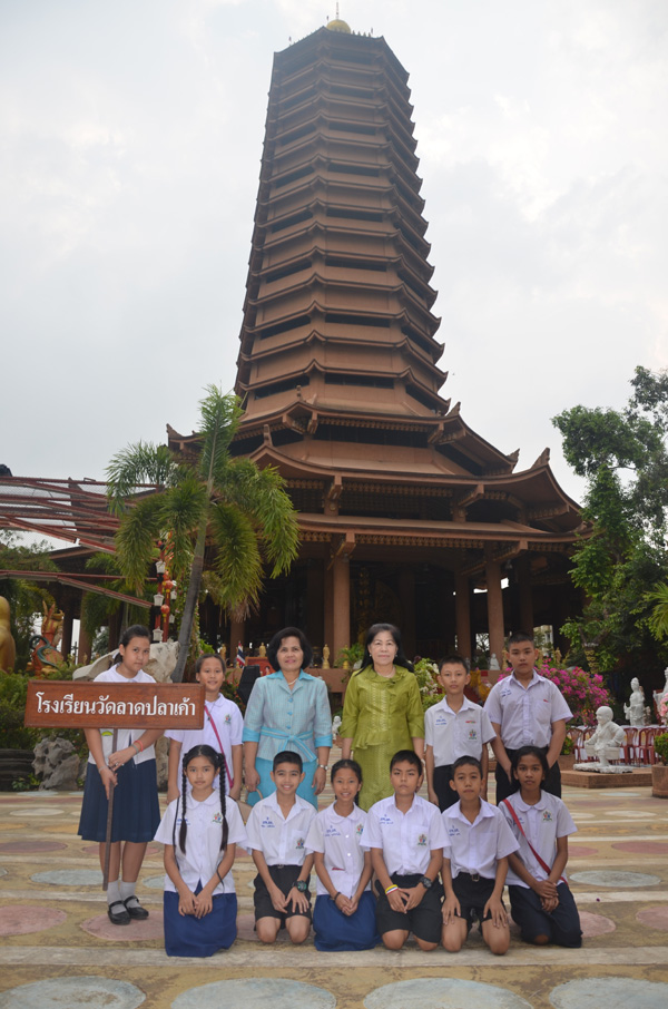 นางหทัยรัตน์ เขียวเอี่ยม ผู้อำนวยการโรงเรียนวัดลาดปลาเค้า นำคณะนักเรียนไปรับมอบทุนการศึกษาจากพระอาจารย์ใหญ่กวงเซง ณ ตำหนักพระแม่กวนอิม โชคชัย 4
