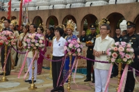 นางหทัยรัตน์ เขียวเอี่ยม ผู้อำนวยการโรงเรียนวัดลาดปลาเค้า นำคณะนักเรียนไปรับมอบทุนการศึกษาจากพระอาจารย์ใหญ่กวงเซง ณ ตำหนักพระแม่กวนอิม โชคชัย 4
