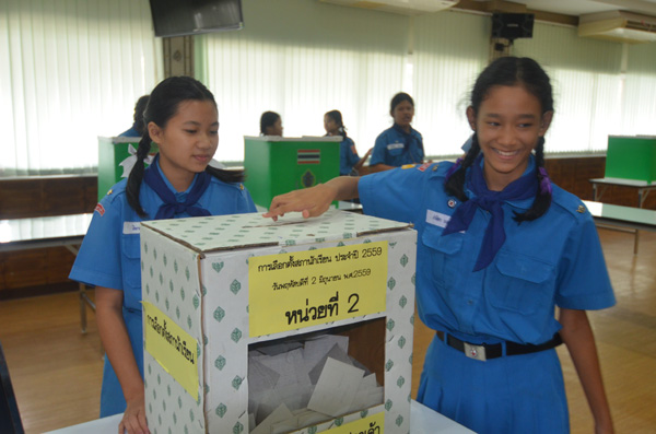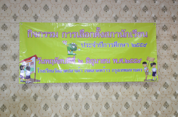 โรงเรียนวัดลาดปลาเค้า จัดให้มีกิจกรรมสภานักเรียน ในวันพฤหัสบดีที่ 2 มิถุนายน 2559 มีการลงคะแนนเลือกตั้งประธานสภานักเรียนประจำปีการศึกษา 2559 และถ่ายทอดสดการนับคะแนนผ่านทางทีวีเพื่อการศึกษา ไปยังทุกห้องเรียน มีนางหทัยรัตน์ เขียวเอี่ยม ผู้อำนวยการโรงเรียนวัดลาดปลาเค้า มาเยี่ยมชมและให้กำลังใจที่ห้องส่งรายการทีวีเพื่อการศึกษาของโรงเรียน ซึ่งเด็กหญิงพรรศณัฐ ลักษณะแมน นักเรียนชั้นประถมศึกษาปีที่ 6/1 ได้คะแนนสูงสุด 197 คะแนน จึงได้รับเลือกเป็นประธานนักเรียน ประจำปีการศึกษา 2559 |