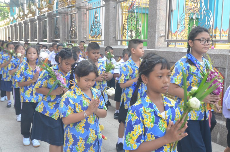 วันศุกร์ที่ 17 พฤษภาคม 2562 คณะครูและนักเรียนสายชั้นประถมศึกษาปีที่ 4 โรงเรียนวัดลาดปลาเค้า ร่วมกิจกรรมเวียนเทียนเนื่องในวันวิสาขบูชา ณ อุโบสถ วัดลาดปลาเค้า